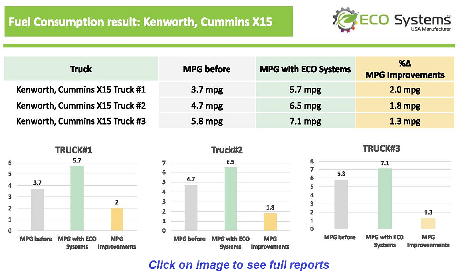 Trucking, Big Rigs saving 6%-15% on fuel - ECO-5 for Large Engines