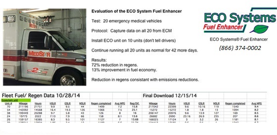 Test results for a fleet of 20 EMS units with ECO-4's installed showed a 72%+